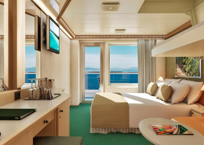 9C - Kajuta s balkónom Premium Vista 17 m² + balkón 7 m². 6. až 9. paluba vzadu. Max 4 osoby. 3 474 € 1 737 € za osobu