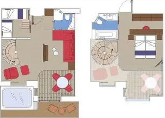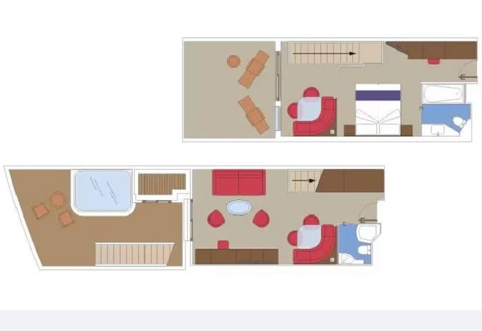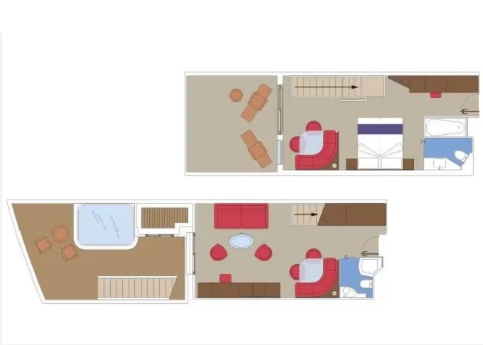 | YJD - Yacht Club Duplex Suite s vírivkou 46 m² + balkón 28-31 m². Vírivka. 2 podlažia, šatník, 2 kúpeľne (1 s vaňou). Max 4 osoby. 16. paluba. Cenový model MSC Yacht Club. Early booking | 9 271 € 9 271 € za osobu | ||
